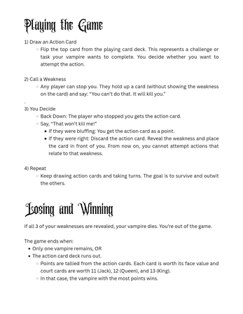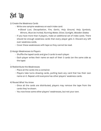 You are a vampire in a coven vying for power, prestige, and survival. There’s just one problem: you don’t know your own weaknesses but everyone else does.